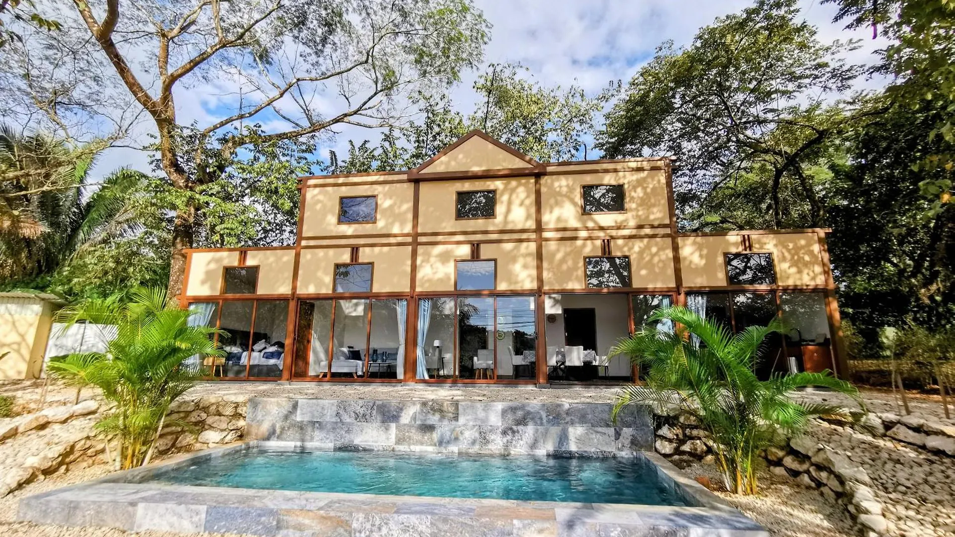 La Villa Palladio Carrillo Hojancha, situada a una distancia de 2 km del Refugio de Vida Silvestre y Zoológico La Selva, cuenta con una terraza con vistas a la piscina.
